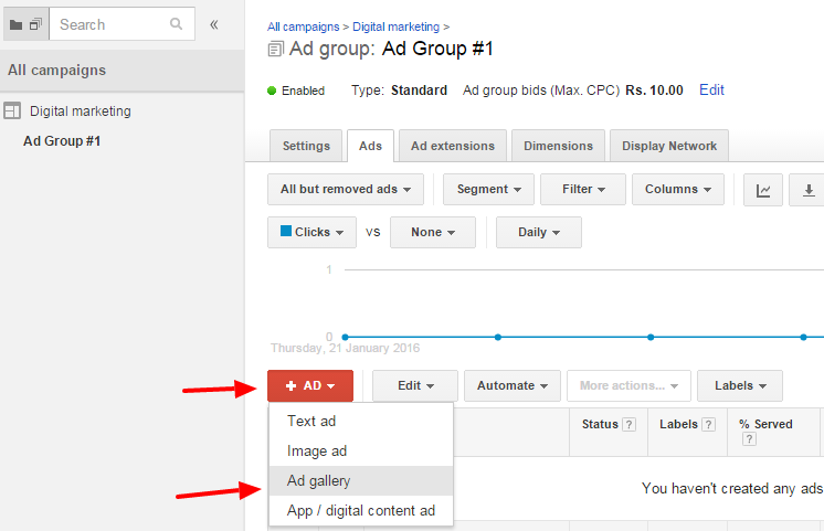 Now that you know the available ad formats. Let’s quickly move on to setting up a campaign. The only prerequisite is a Google Adwords account. After you login to your Adwords account, under the campaign tab, you will find “select display network”. Click on it.